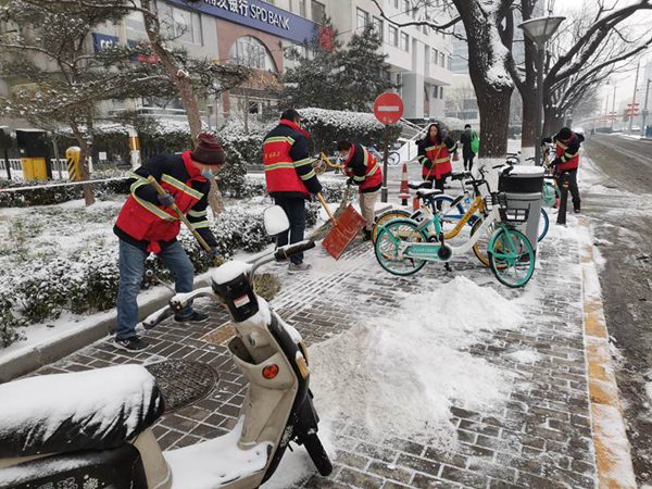 2022年1月21日一场大雪降临北京,由于夜间不停的下导致路上积雪达一两公分厚。两天的降雪给我们带来美丽雪景的同时,也给出行带来不便。有的路面因来往行人和车辆走动导致了泥泞和结冰。外面的行人经走过人行天桥时增加了困难。为了方便行人和居民出行,保障出行安全,消除安全隐患,1月22日公司利用周末时间在北京一三城市环境有限公司党支部王书记和总经理王静领导下组织了公司全体干部党员和入党积极分子到安定门外大街进行“铲冰除雪迎冬奥、不忘初心践使命”为主题的义务铲雪活动。